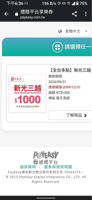 標題[交易] 新光三越電子禮卷4500