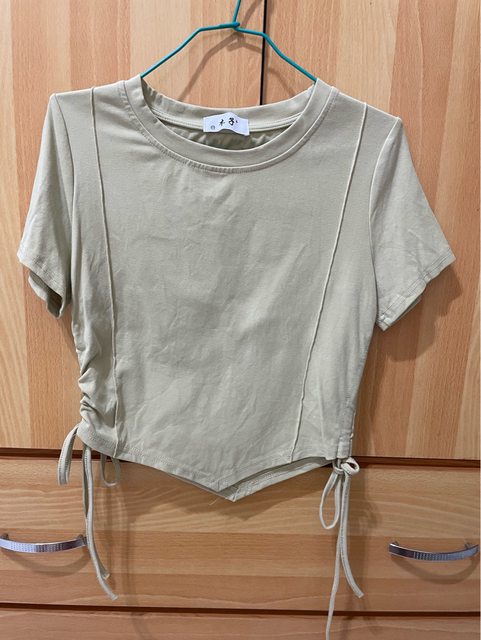4.酪梨綠側綁帶短版上衣$100(附賣家照)