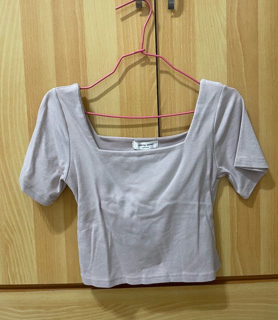 6.粉紫色方領短版上衣$100(附賣家照)