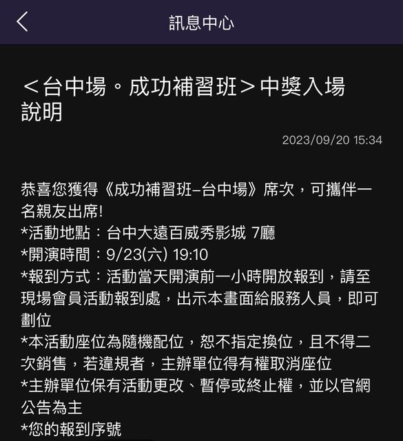 物品名稱:9/23 19:10大遠百威秀成功補習班特映