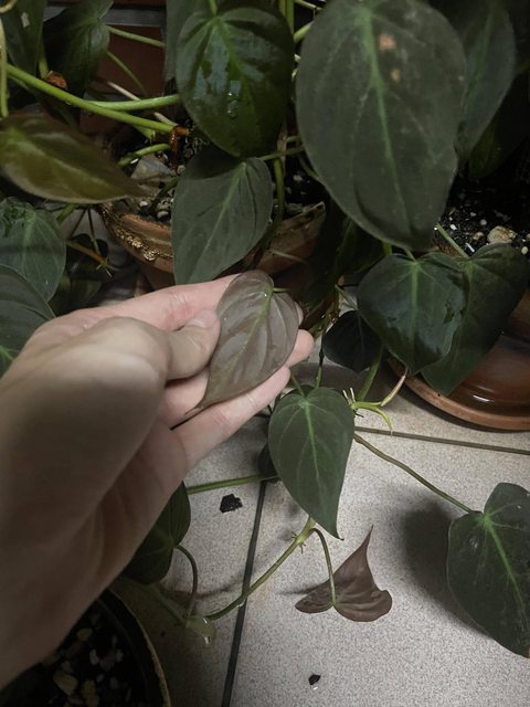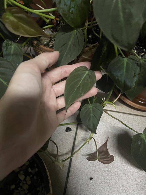 小葉型的蔓綠絨~表面是絨布霧面質感!(很好摸),葉背是深紅紫色,很好種,對光照需