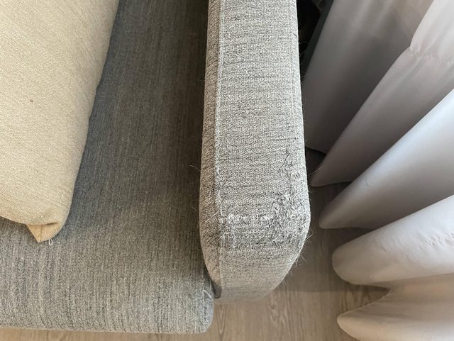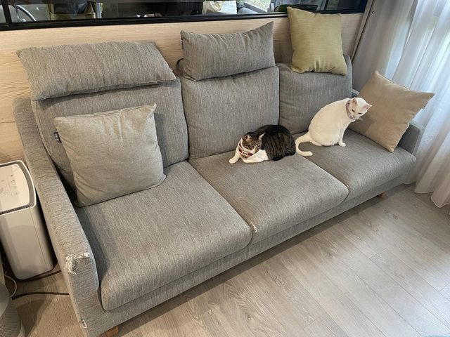 兩側扶手與中間坐墊有貓抓破, 但只有布料本身破損, 沙發結構沒問題