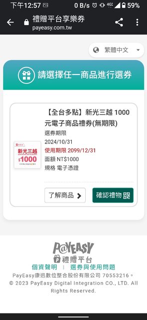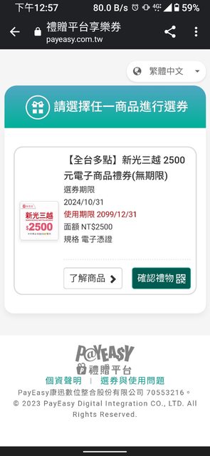 新光三越QR code電子禮券