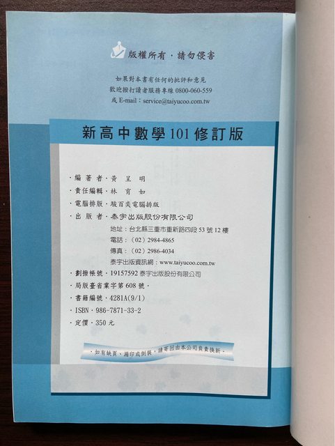 標題[交易] 沙鹿-新高中數學101修訂版