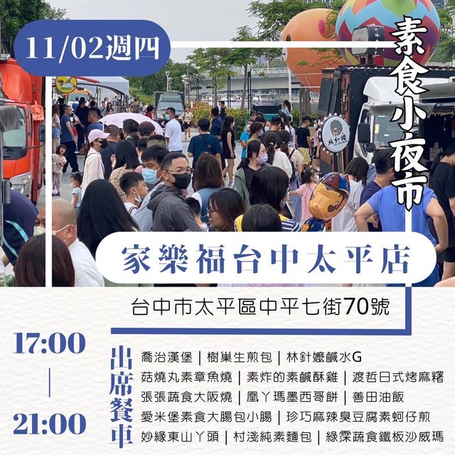 標題[閒聊] 素食小夜市 11/2到台中太平一遊