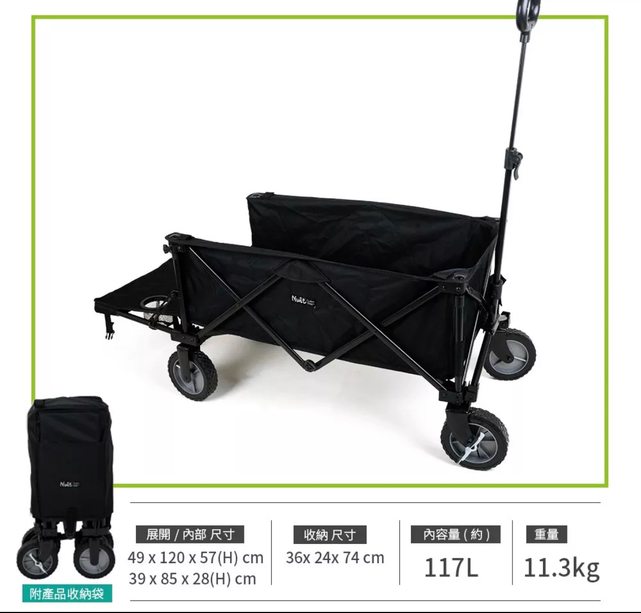 努特NUIT 露營推車 黑小輪 加長拉桿 折疊行動手推車 NTF177BK/全新只拆開,尺寸太