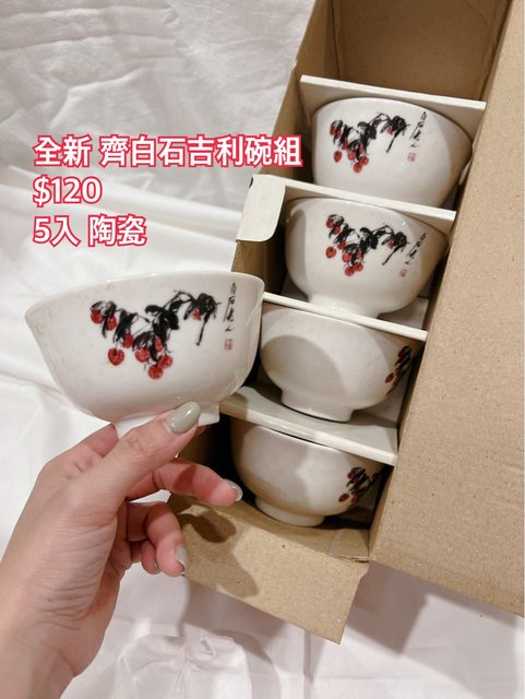 1. 全新 齊白石陶瓷吉利碗組 5入 $120