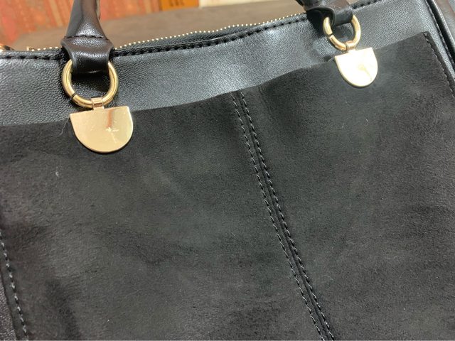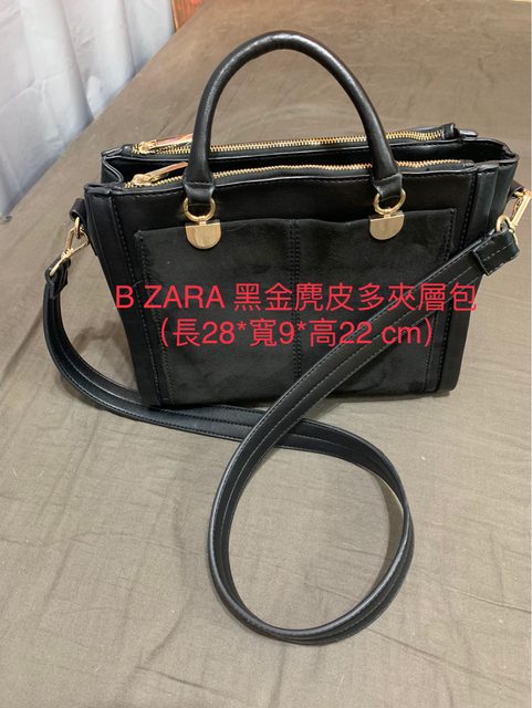 B ZARA 黑金麂皮多夾層包 500元
