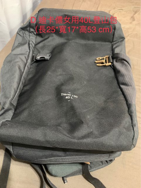 D 迪卡儂女用40L登山包 1000元