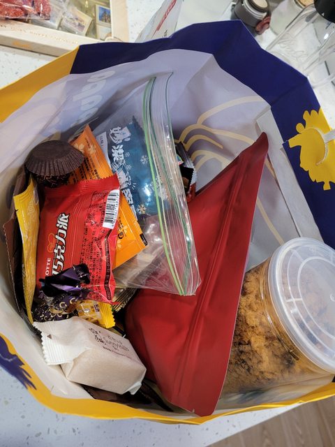 贈送食物一袋,多是零食