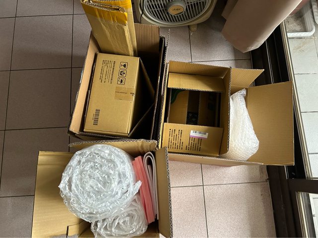 都是網購取得的紙箱跟緩衝耗材,