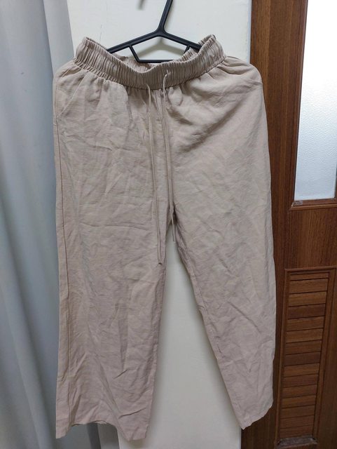 9.燕麥色鬆緊寬褲