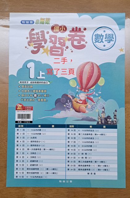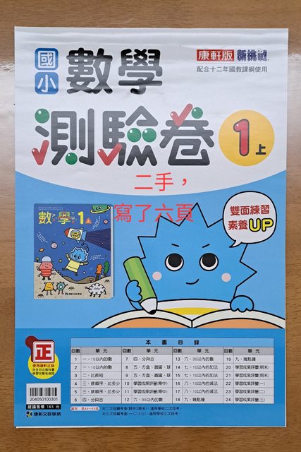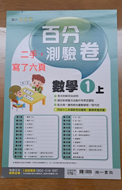 交易類別:出售 面交地點(須為台南市內): 永康火車站 交易物品/金額/說明:(避免誤解請盡量於文內詳細說明) 1.一上國語和數學評量及測驗卷,共10本,有幾本全新沒寫過,有些只寫幾頁,合售300 元