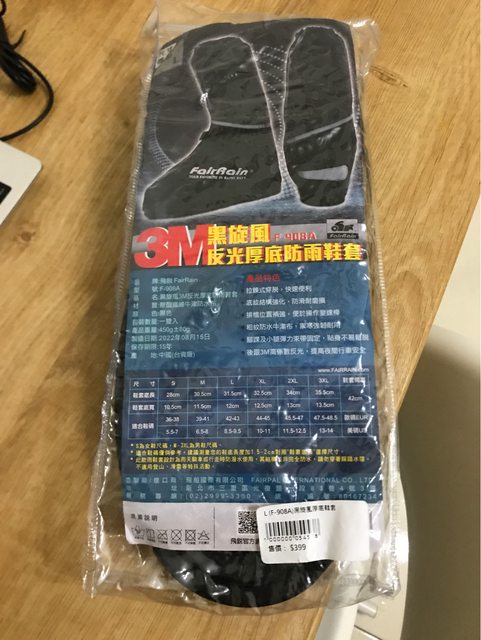 昨天父親節去雨傘王買雨具,防雨鞋套用不到,買回來沒開封沒使用。