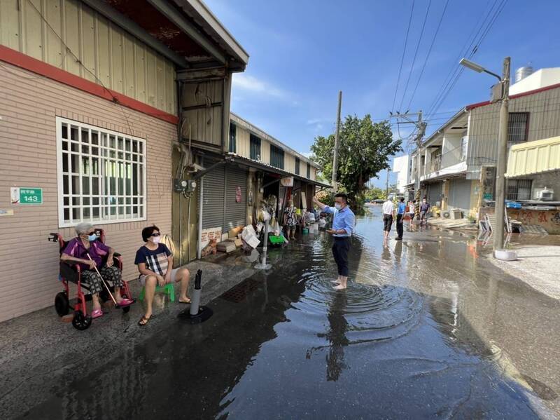 有民眾將安南區淹水情況攝錄,向謝龍介反映狀況,其中朝皇宮附近的巷弄內因積水較高