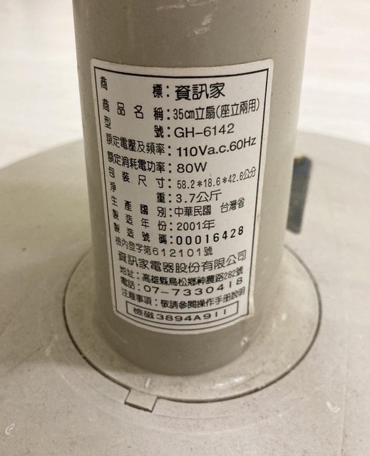 徵求內容: 贈送 2001年製老舊堪用直立式電扇一台