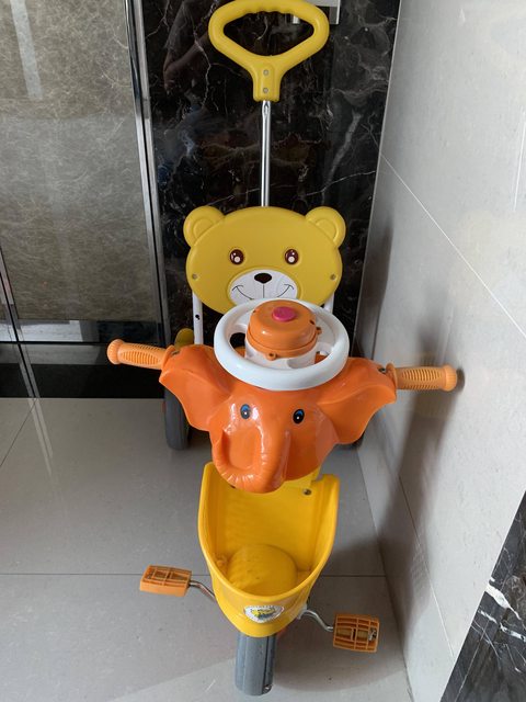 交易物品:二手幼兒三輪車,售100元。左踏板騎太快會掉,無法固定,幼童只能慢慢騎,