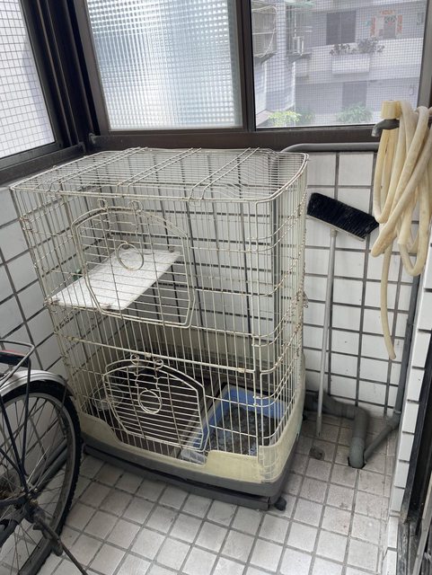 灰塵超多大貓籠 旁邊有水管 可以借你刷子 洗乾淨了再帶回去
