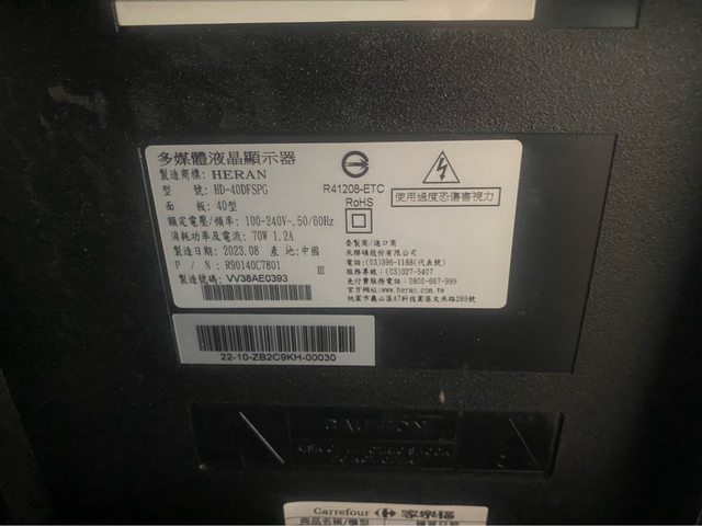 禾聯電視40寸一台,賣4500
