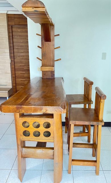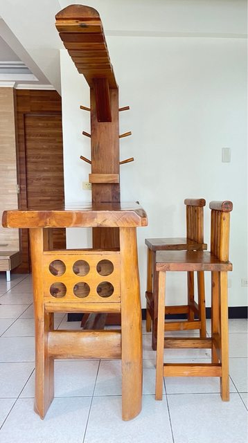 二手原木傢俱吧台+兩張高腳椅