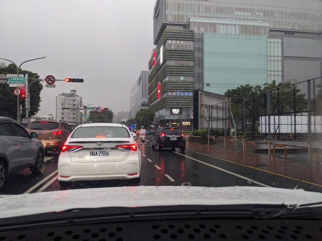 冒著風雨來到現場發現停車場快滿了