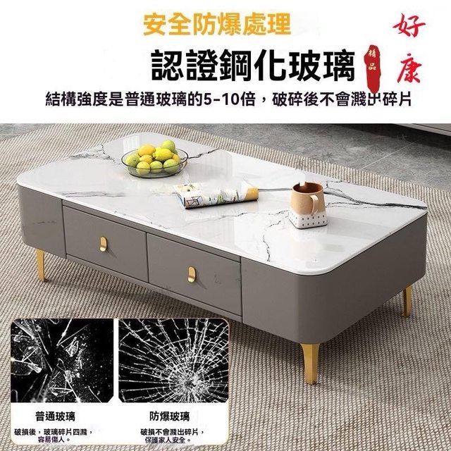 全新100*50*高40鋼化玻璃岩紋抽屜茶几