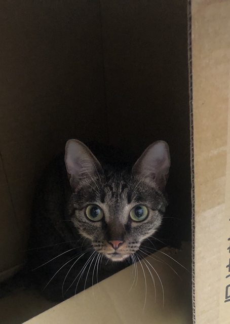 特徵:虎斑(深棕色)、眼睛黃綠色底黑色瞳孔、成貓但瘦小、聲音細