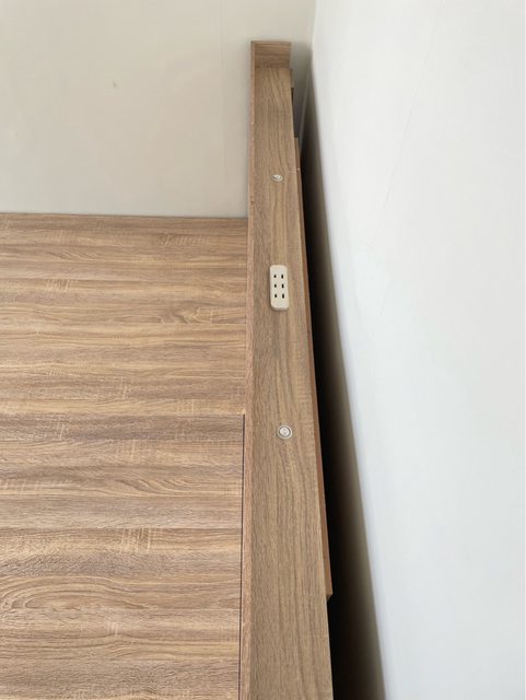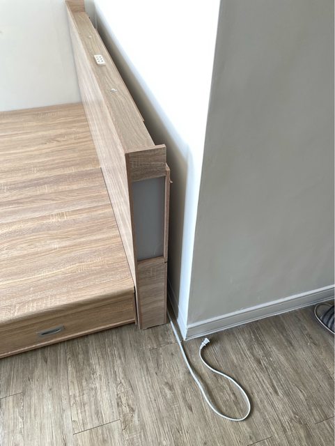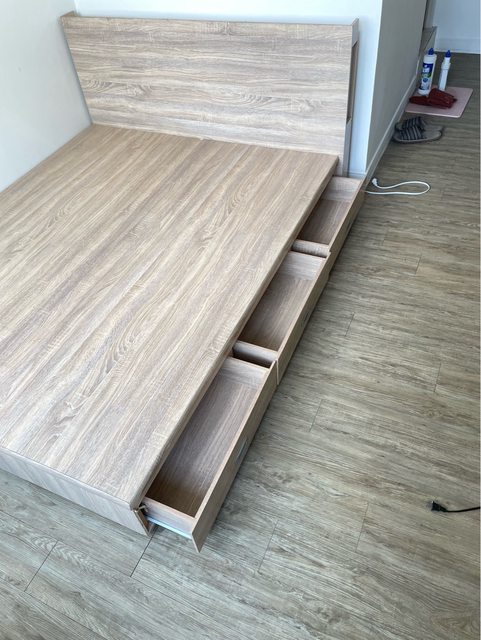 有插頭與小夜燈功能的雙人床架,底部雙側各有3個抽屜可做收納。價格$1500