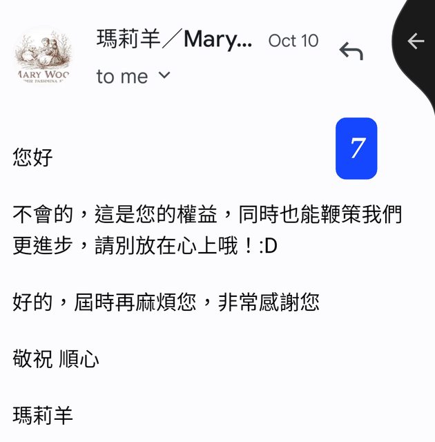 → nochewen: 理任何事情。賣家的信件內文看起來是有誠意處理,也沒因 10/30 04:28