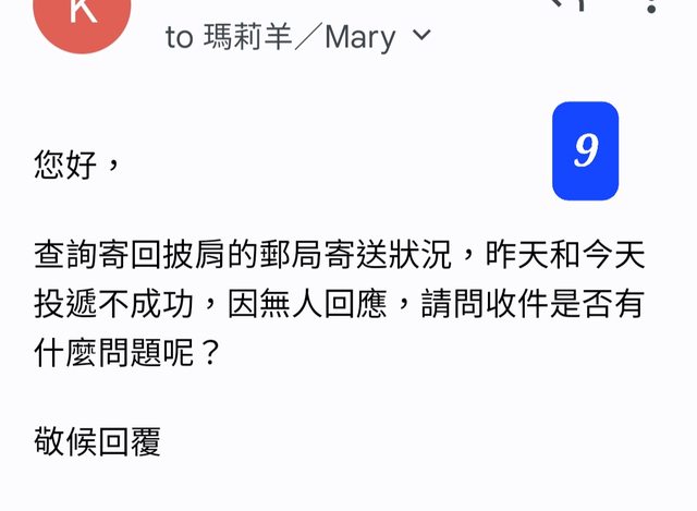 → kate64: 錯時間點?兩次寄送未送達後會放置招領單也是正常流程 10/30 16:38