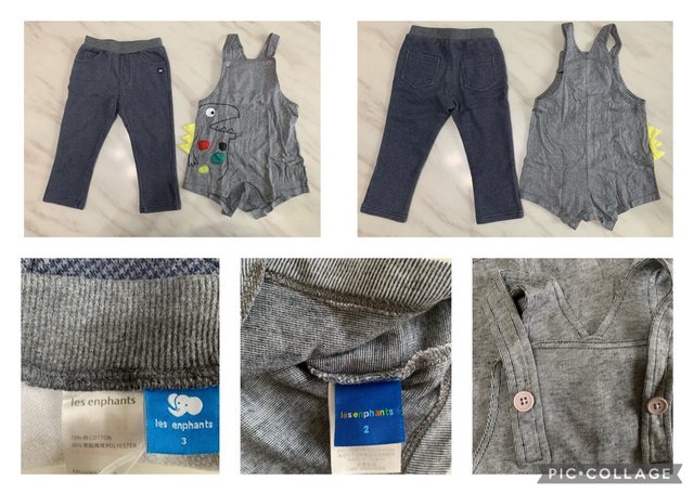 B.恐龍吊帶褲:2號,吊帶釦子左右剩各1個,寶寶長大可手縫移動位置繼續穿,備釦還