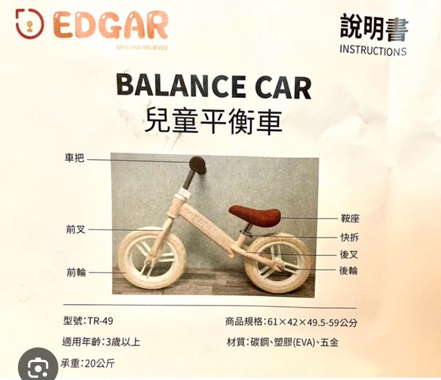 EDGAR兒童平衡車 全新未拆箱 $400元