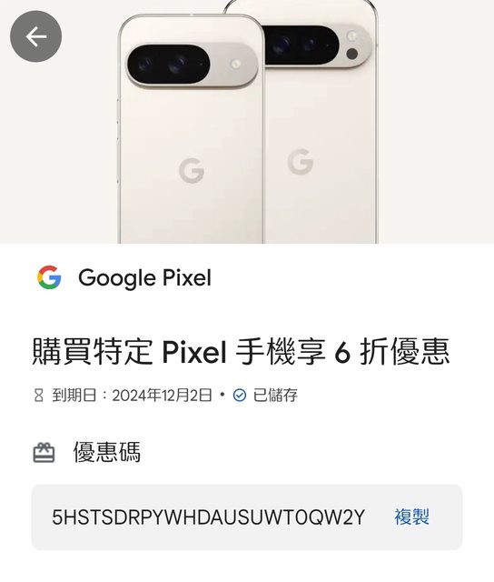 徵求類別: 贈送pixel 9六折券