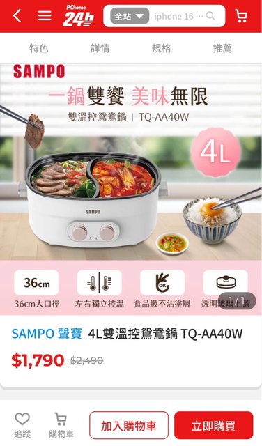 標題[交易] 全新聲寶4L雙溫控鴛鴦鍋 售1000