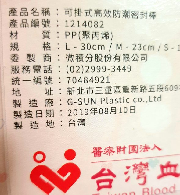 <洽中>27.全新防潮密封棒20元 捐血贈品,2019/8/10製。
