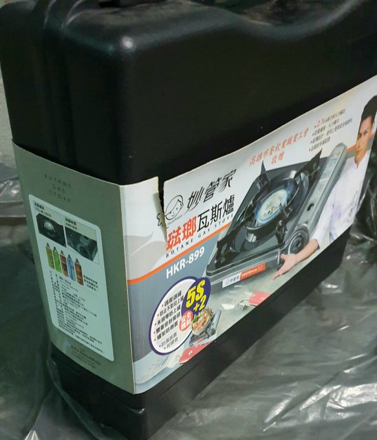 <已售出>10.全新妙管家琺瑯瓦斯爐200元 2022/03/04製,有餐飲工會敬贈字樣,包裝紙有裂痕,全新未使用。