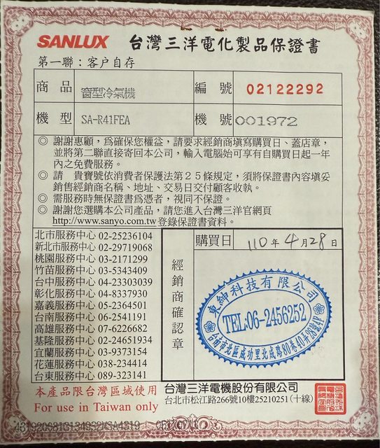 標題[交易] 三洋窗型定頻冷氣