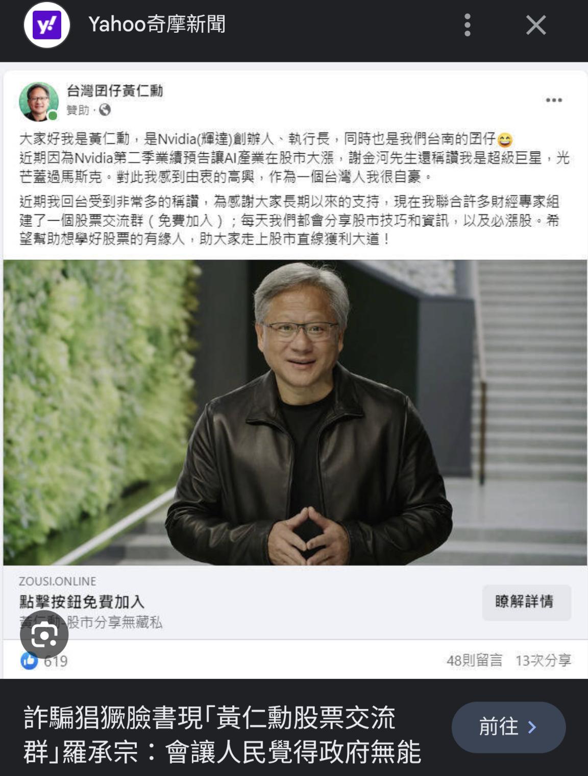 標題[新聞]黃仁勳報明牌!點名9台廠有潛力謝金河:他是票房保證