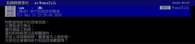 標題[新聞] 非2類人不租!女網友嘆「新竹租屋難」