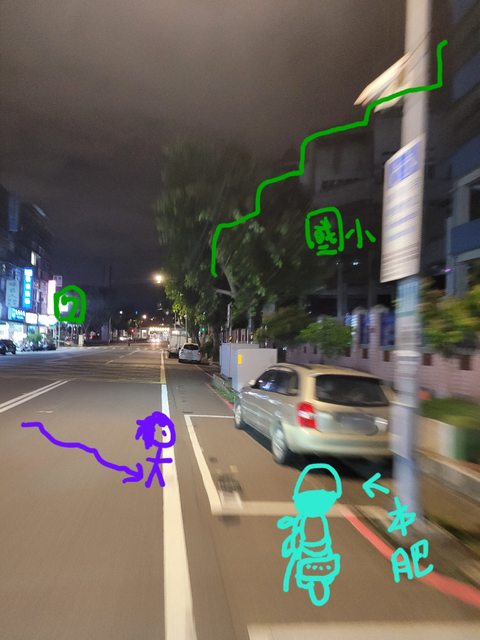 : 途中經過青x國小旁公車站在路邊停了一下