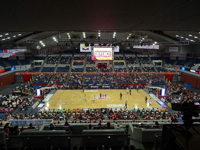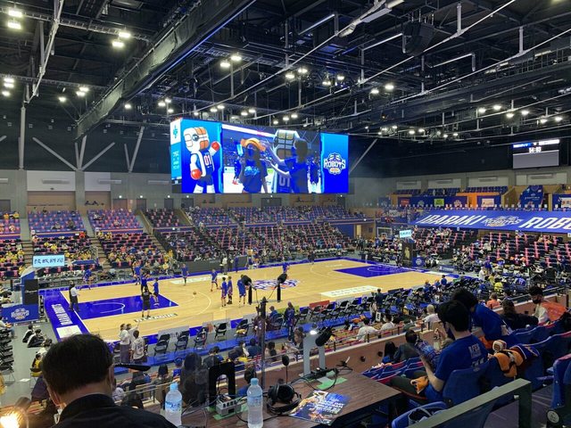 琉球黃金國王 沖繩體育館,大家熟悉也舉行過東超比賽,場中央這個長方形的大螢幕結