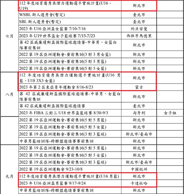 2023/5/26 U16男籃遴選名單公布;2023/6月-8月集訓。