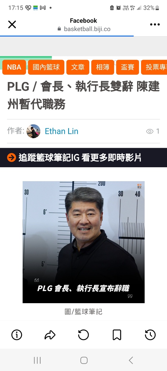 推 march828 : 職籃/先跳船?PLG會長、執行長都請辭 陳建州暫代 07/14 17:17