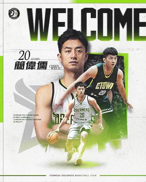 福爾摩沙夢想家持續進行補強計畫,球團今官宣簽下射手簡偉儒,為球隊後場增添穩定火 力。 簡偉儒今年 32歲,擁有豐富的賽場經驗,第 12 季SBL選秀會上被金酒選中展開職業生涯 , 並在 2015及2016年代表中華男籃出賽,2020年他投入 PLG披上富邦勇士戰袍,2022年再 度轉戰 T1加盟臺南台鋼獵鷹,剛加入獵鷹首季他即成為球隊即戰力,場均攻下10.3分、 3.6 籃板、2.9助攻,外線命中率將近三成五,更在此創下單場 23分、6 記三分球的生涯 新 高,致命的外線冷箭成為球隊倚重的隱形武器。 資料來源:https://www.threads.net/@rbceddie/post/C9gl4lyTtKB/?xmt=AQGzDNP-u0i4 6VpFry6tBrAM8-6wtGkXmhp4mi3ekS8Kcg https://i.imgur.com/lcDq7gT.jpeg