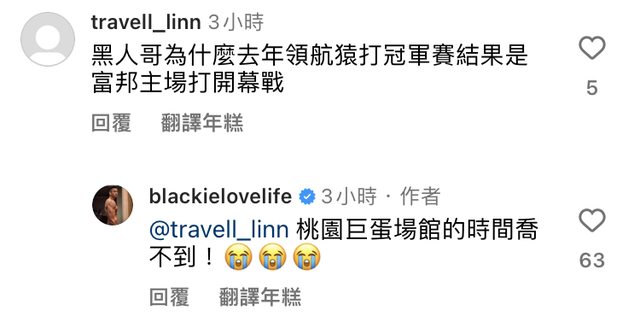 → LEOOOO : 盟打球,希望傑哥最後一年只是說說的 10/21 20:46