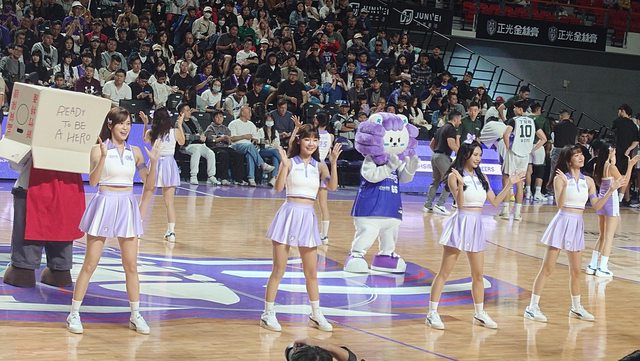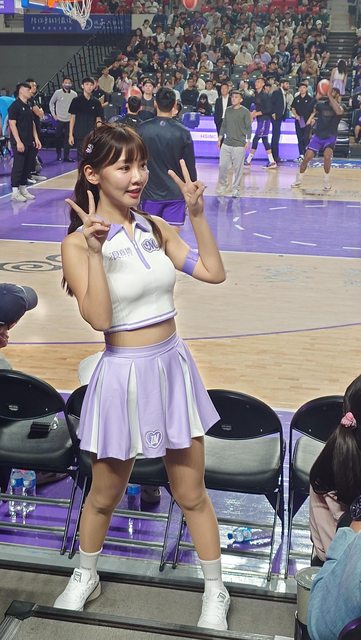 球員進場完後會有一個慕獅女孩教球迷跳應援舞的環節 剛好小映在我前面 只好拍好拍滿