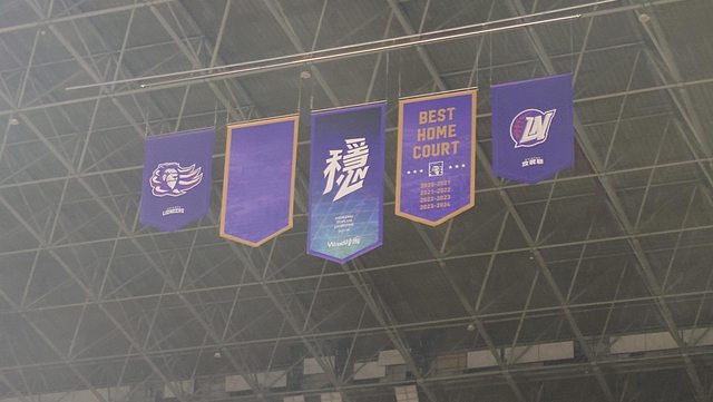 最佳主場四連霸旗幟 左邊空著的說是要留給第一座總冠軍 但目前看來短時間應該很難會有