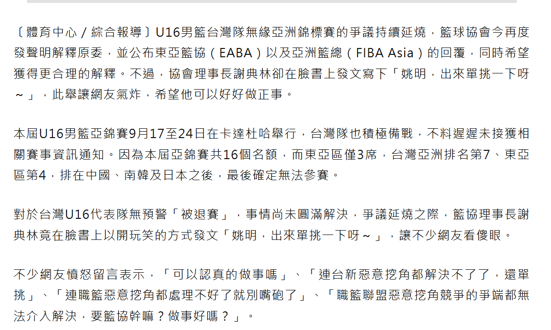 標題[新聞] U19籃球聯盟新北鷺江首秀滑鐵盧 林昊