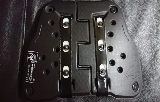 對比一下,CP9 稍小點,所以但能正常替換到 Rev'it! 防摔衣上使用。