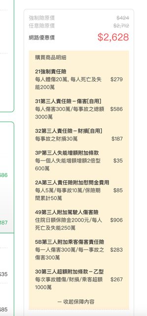 推 linda888: 選上面那張 第三責任險的額度比較夠 27.240.178.227 12/13 07:25